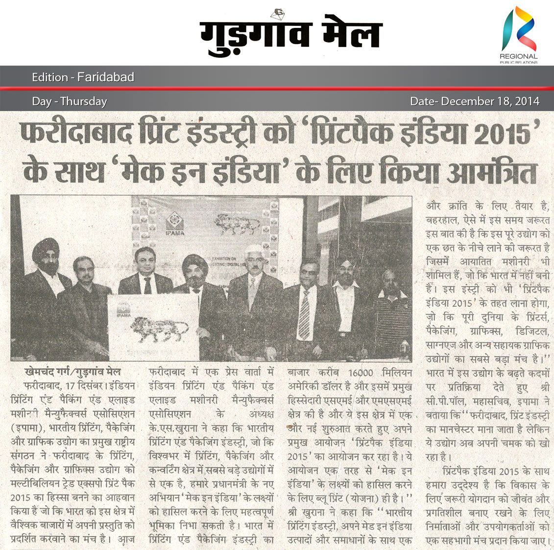 PRESS RELEASE:Printing Packaging & Allied Machinery Manufacturers' Association (IPAMA) Hosts Inaugural Promotional Meet for IntraPac India and PRINTPACK INDIA in Amritsar.